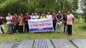 মঙ্গলবার (১ অক্টোবর) রাজনগর উপজেলার মনসুরনগর ইউনিয়ন পরিষদ, কান্দিরকুল ও তারাপাশা উচ্চ বিদ্যালয় পয়েন্ট, মৌলভীবাজার উপজেলার চাঁদনীঘাট পয়েন্ট এবং কুলাউড়া উপজেলার চৌমুহনা ও টিলাগাঁও পয়েন্টে ৬২টি পরিবারকে গৃহনির্মানের জন্য টিন, নগদ টাকা ও সেলাই মেশিন প্রদান করা হয়। এসময় উপস্থিত ছিলেন প্রথম আলোর নিজস্ব প্রতিবেদক আকমল হোসেন নিপু, মনসুরগর ইউনিয়নের প্যানেল চেয়ারম্যান জাহাঙ্গীর আলম, রাজনগর প্রেসক্লাবের সাধারণ সম্পাদক আব্দুর রহমান সোহেল, ব্যবসায়ী আব্দুল হামিদ রুবেল, ক্যম্পেইন ফর মিডিয়া ফ্রিডম (সিএমএফ) এর সভাপতি ও যুগান্তরের মৌলভীবাজার জেলা প্রতিনিধি হোসাইন আহমদ, দেশরুপান্তরের জেলা প্রতিনিধি শাহবান রশীদ চৌধরী অনি, সহ-সভাপতি আশরাফ আলী, সাধারণ সম্পাদক মো. ফরহাদ হোসেন, দপ্তর সম্পাদক কামরান আহমদ, কুলাউড়ার সমন্বয়ক তানিম হোসেন রুহিন, সমাজসেবী কাওসার আহমদ ও সংবাদ সারাবেলার কুলাউড়া প্রতিনিধি শুভ গোয়ালা প্রমুখ।