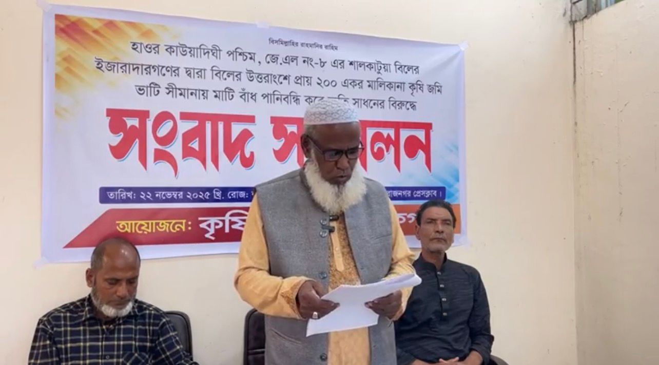 এদিকে সংবাদ সম্মেলনে বলা হয় জমির মালিক পক্ষের টিপু সুলতান ও অন্যান্য শরিকরা মিলে তাদের জমি দেখতে গেলে জলমহালের ইজারাদার বিরেশ বিশ্বাসের স্থলে পাঁচগাঁও ইউয়িনের খালদার গ্রামের লিটন মিয়া তাদের বাধা দেন। এনিয়ে উভয় পক্ষের মধ্যে বাকবিন্ডা হলে মালিকরা চলে আসেন। সংবাদ সম্মেলনে বলা হয়ে, ‘জলমহাল নীতিমালা পরিপন্থি সাব লিজ নিয়েছেন। বিষয়টি তিনি সামাজিক যোগাযোগ মাধ্যমেও প্রাচর করেছেন। আবাদের মৌসুমে জলমহাল ইজারাদারের দেয়া বাধে কৃষি জমির প্রায় ১২০ জমি অনাবদি থেকে যাওয়ার আশঙ্কা দেখা দিয়েছে।’